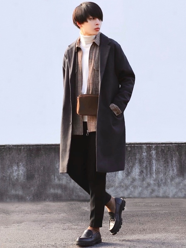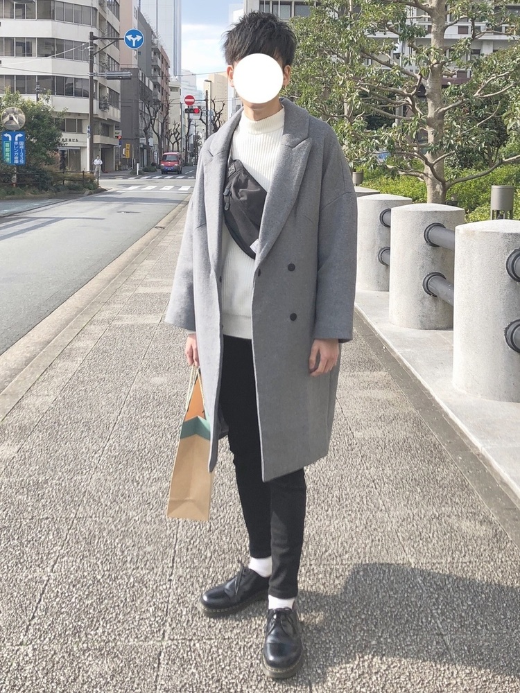 グレーチェスターコートにワイドパンツを合わせる際には、Aラインシルエットを意識するようにしましょう。Aラインのシルエットを意識することで、スタイルアップにも繋がります。