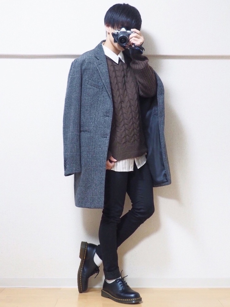 ニットとシャツをレイヤードすると、それなりにボリュームも出てきます。よって、ビッグシルエットのアウターを羽織り、着太り感を軽減させるようにしましょう。また、マンネリ化しないためにもアウターにはチェック柄を採用することをおすすめします。