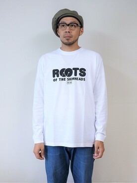 長袖Tシャツとブルージーンズとを組み合わせたメンズコーデです。自然なシルエットに見えますので、年齢に関係なくおすすめできる着こなしです。デニムと合わせるための長袖Tシャツと呼べるくらい、マッチしているコーデです。