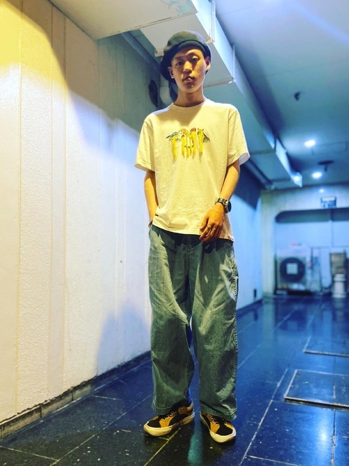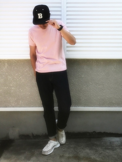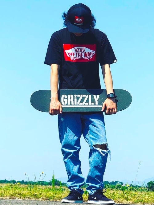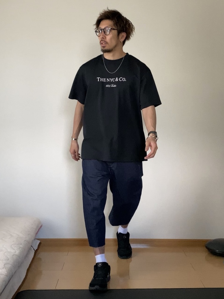 スケータースタイルのため、全体的にオーバーサイズにまとめていますが、Tシャツとデニム共に違和感のあるオーバーサイズではありません。おしゃれでシンプルな組み合わせですが、Tシャツと足元の靴を黒でまとめることで、よりかっこよく見えます。
