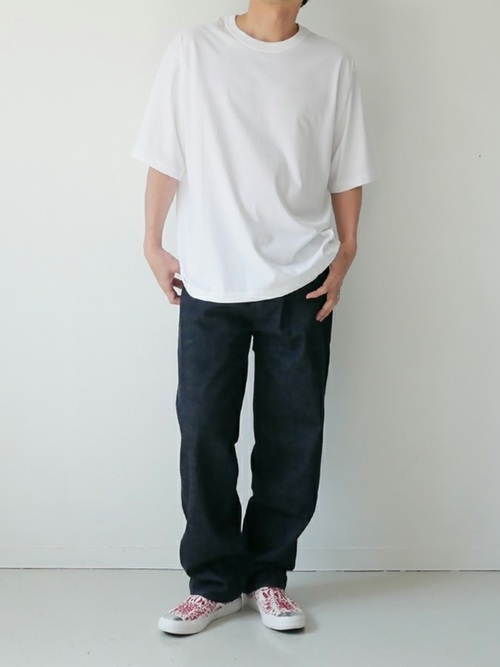 まずはおすすめのTシャツからご紹介します。オーバーサイズに、ワイドに着こなしても、タックインして着こなすのもいいでしょう。裾の長さもチェックして選んでください。