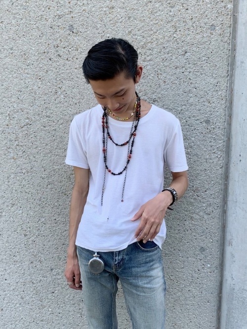 Tシャツとジーンズにはアクセサリーを合わせてみましょう。白のTシャツ、そして明るめのジーンズでシンプル過ぎるコーデになった場合は、アクセサリーの存在がより強調されます。