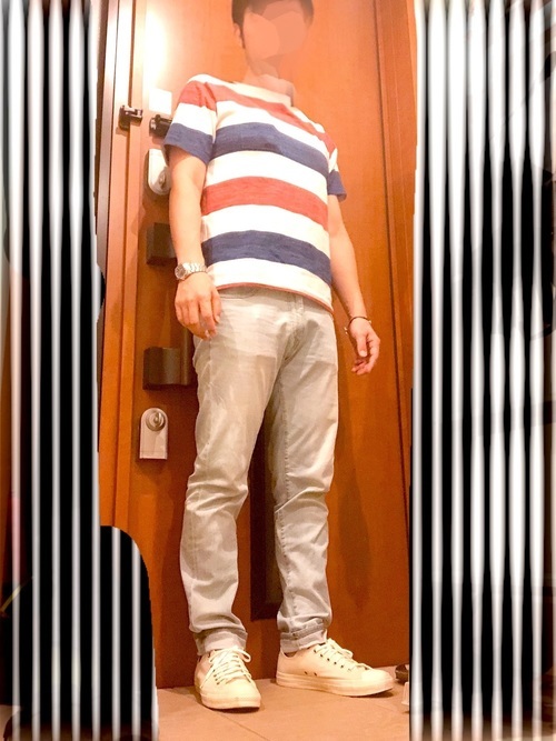 雰囲気を変えて、ボーダーのTシャツに明るめのジーンズという組み合わせもおすすめです。ワイルドなイメージはなく、かわいいメンズコーデができあがります。Tシャツの裾は短めに整えれば、よりかわいく見えます。