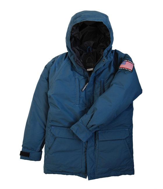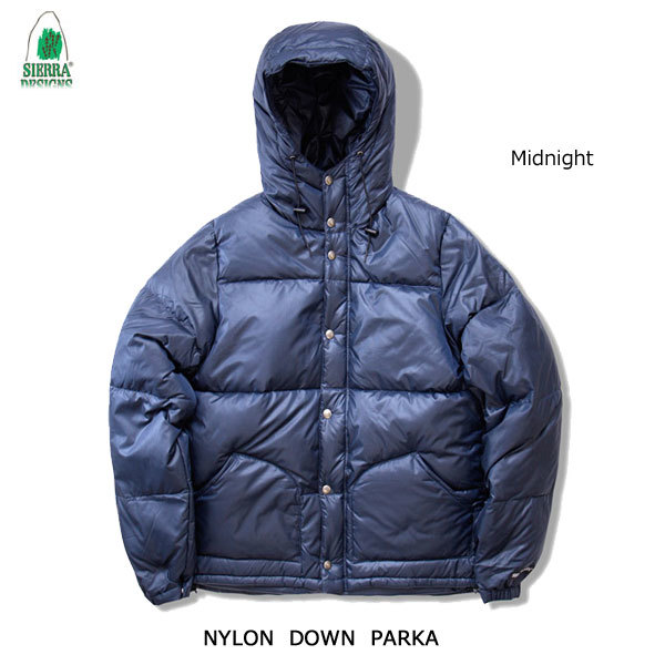 ダウン・シエラ・ジャケットをベースに作られたモデルで、表地にはナイロン生地が使用されています。従来のダウン・シエラ・ジャケットと異なり、フードが一体型で防風性が高いことや左腕の袖口に織ネームがついていることが特徴です。