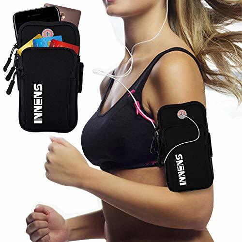 Innens ランニングアームバンドは、2ヵ所のポケットがあります。ワイヤレスイヤホンなど使用していない時は、閉まっておくことができます。優先イヤホンを使用している方は、ケースの上部にイヤホン用の穴があるので、音楽を聴きながら快適にランニングができるアームバンドです。