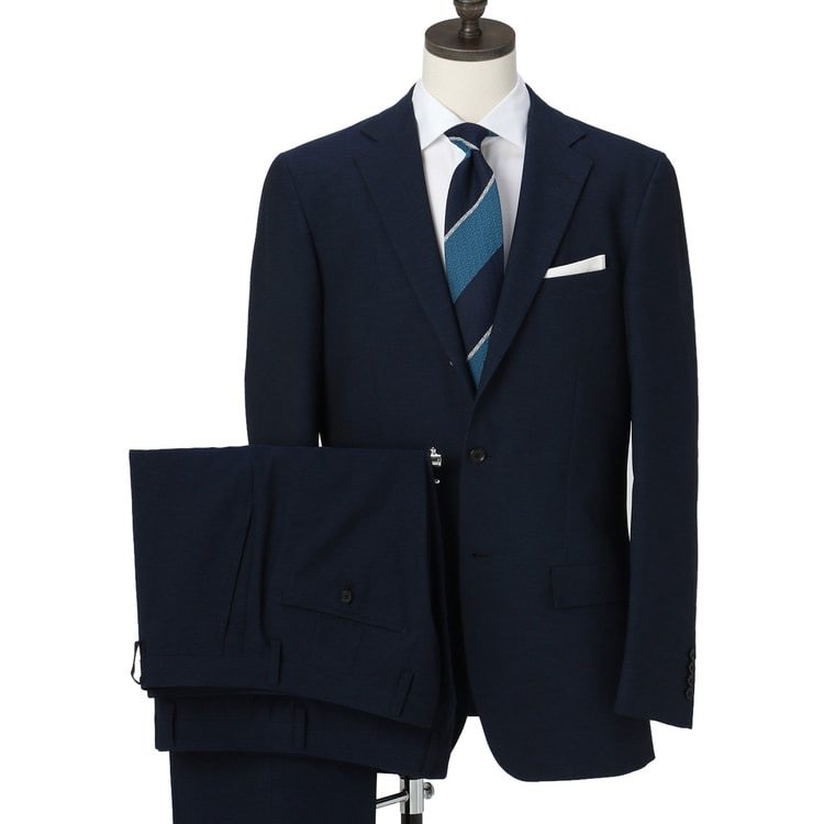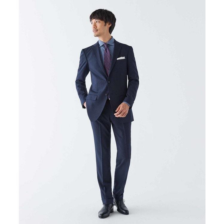 洗える 撥水 段返り3ボタン 2パンツ 紺織柄無地 スーツ 10month