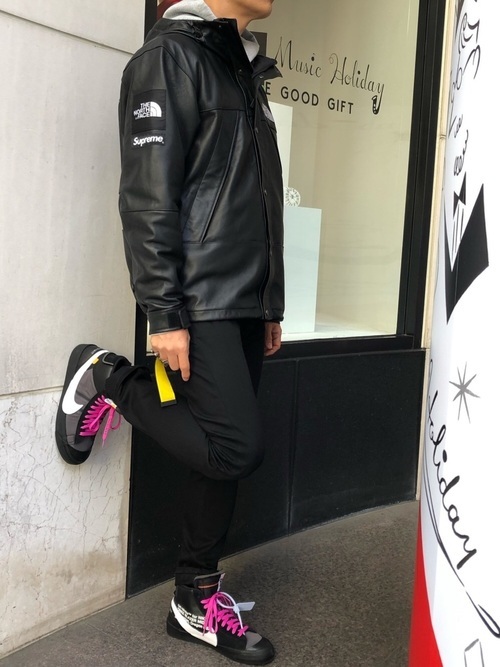 黒のティルテッドトールに、マウンテンパーカーを合わせた、スポーティーなコーデです。足下もハイカットのスニーカーを合わせて、スポーティーな雰囲気を大事にしつつもさりげなく彩をプラスしています。