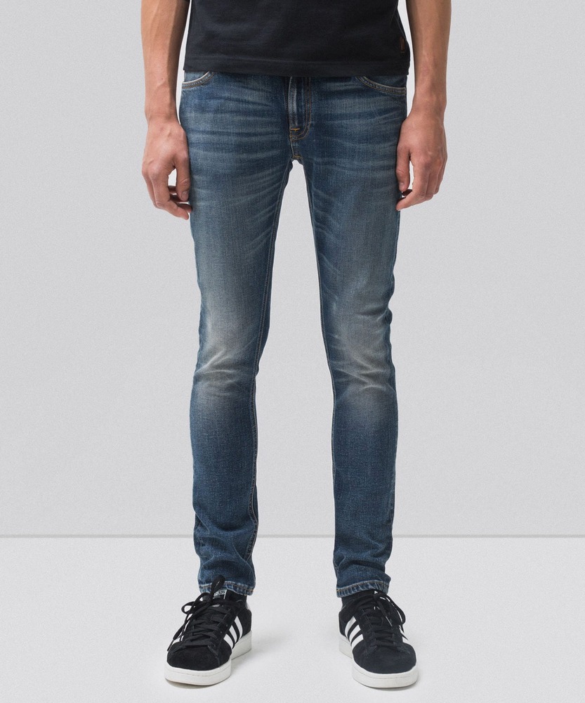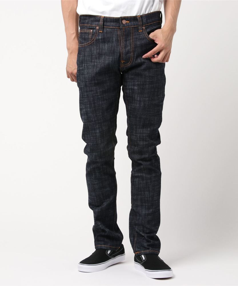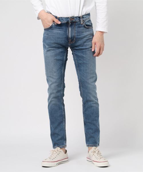 シンフィンはヌーディージーンズで定番アイテムであり、1番人気と言っても良いジーンズです。股上が深く、腰回りがゆったりとしたスリムなシルエットとなります。ひざから裾にかけて細くなっていくテーパードが効いたモデルのジーンズです。