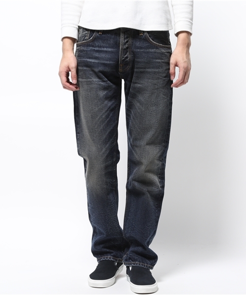 ストレートアルフはももまわりとお尻周りにゆとりがあるレギュラーフィットとなり、そのまま裾まですとんと落ちているストレートのシルエットのモデルです。ジャストのサイズ感ですっきり穿くのも良いですが、サイズアップしルーズに穿くのもおしゃれですね。