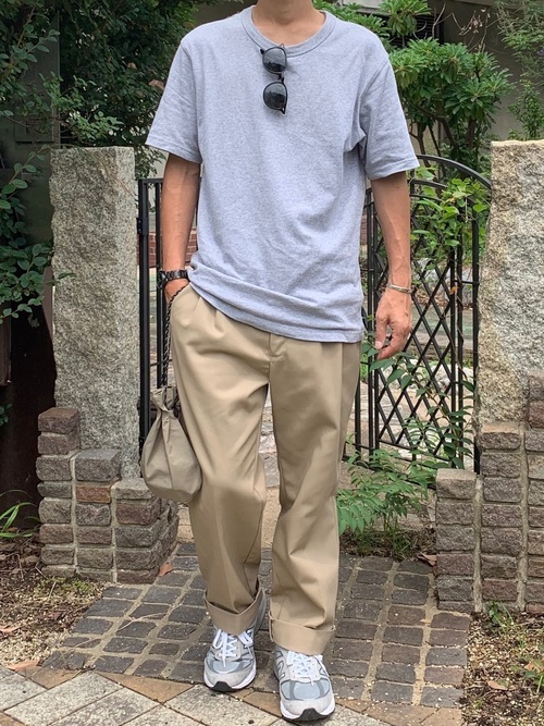 Tシャツとワークパンツを組み合わせると、カジュアルコーデに仕上がります。シューズも同じテイストで組んでもいいですが、革靴をプラスさせることで、足下に抜け感が加わりよりおしゃれに見えます。