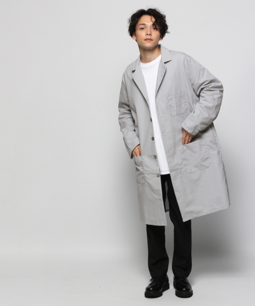 レッドキャップのロングコートは、裏地を付けていないおかげで軽い着心地を楽しめます。またインナーアイテムにボリューミーなトップスを持ってきても、着ぶくれしにくいです。秋や春など、アウター無しでは肌寒い時に着こなすといいでしょう。