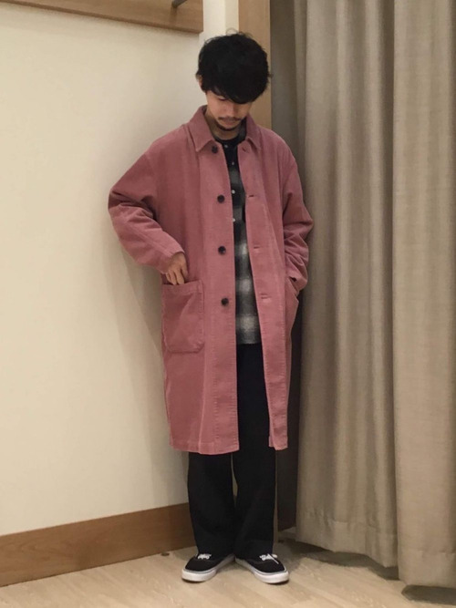 レッドキャップは別注アイテムも豊富に揃えています。こちらのアイテムは、カラーやシルエットが普段着としても着こなしやすくなっているので、ワークパンツ初心者にもおすすめです。アウターにロングジャケットを羽織れば、中性的で優しい雰囲気のコーデに仕上がります。