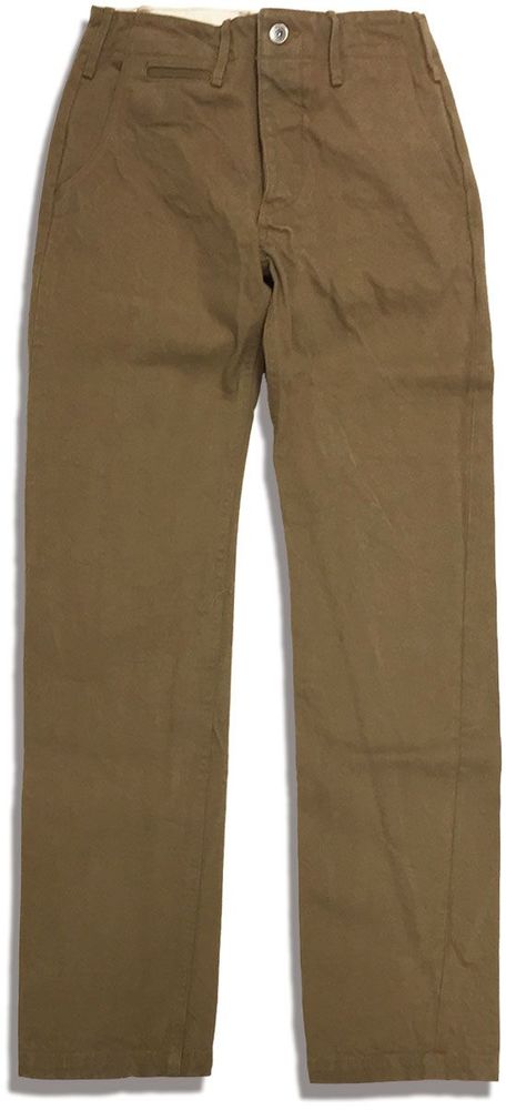 オリジナルの硫化染めセルビッチチノによる、サムライジーンズのへビィーチノパンツです。硫化染料で染めている為、経年での色落ち・アタリ感も楽しめます。細身で股上が浅く、スッキリと穿けるシルエット。裏には刃モデルでお馴染みの家紋柄スレーキが使われています。