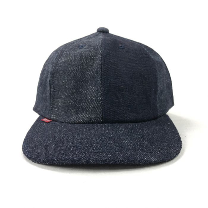 デニム製のベースボールキャップです。ボトムスに使用されるデニムを贅沢にランダム使用した、新型8枚接ぎキャップ。トップ部分に8枚パネルを採用し、クラシカルなシルエットに。アジャスターベルトでサイズ調節も可能。