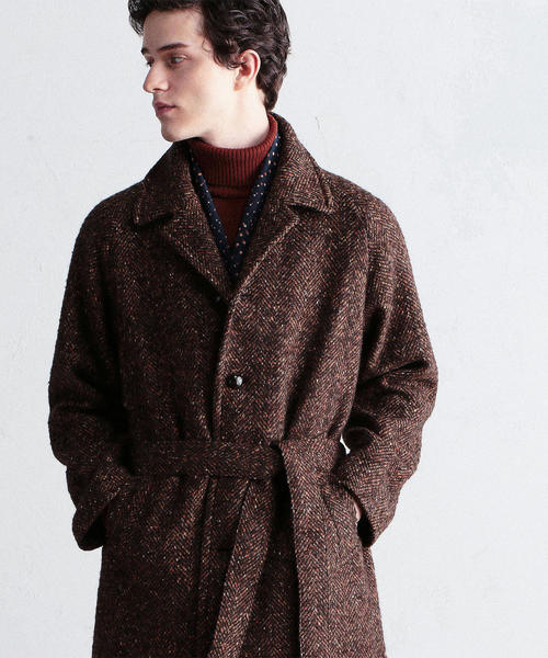 イタリアの生地ブランド〈Moessmer〉社の定番ツイードを使用したベルテッドステンカラーコートです。ラグランスリーブやレザーの包みボタンなどのクラシックなディテールを現代的なボリュームシルエットでアレンジし、オーセンティックでありながらモダンな印象の一着となっています。