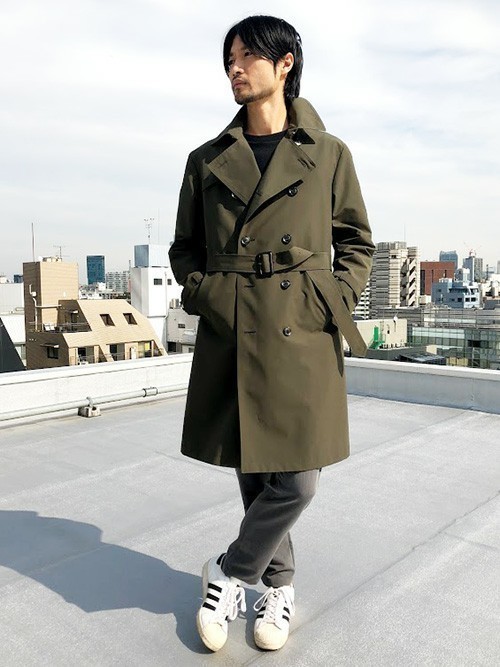 スッキリとしたAラインシルエットのきれいめカジュアルスタイルです。コンパクトなサイズ感のミドル丈のコートとテーパードパンツで端正なシルエットに。スニーカーで足下にカジュアル感をプラスすることで、メリハリのある軽快な着こなしに仕上がっています。