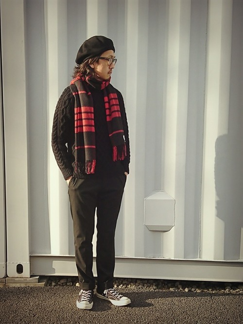 大判のストールはさらりと巻くだけでもコーデの主役を張ってくれます。いつものコーデに合わせてカラーを選ぶようにすると良いでしょう。ニットの素材感ともよく似合うアイテムです。