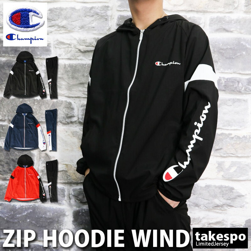 4.【Champion】ジップフーデッドジャケット・パンツ(ウインドブレーカー)