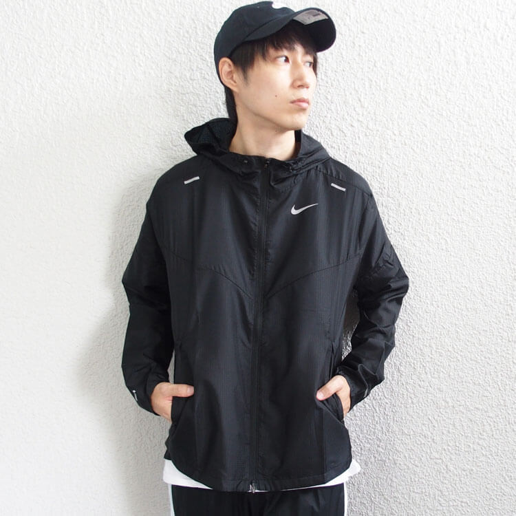 「NIKE(ナイキ)」のエッセンシャルジャケットは、通気性に優れたデザインも人気のウインドブレーカーです。夏など、汗をかくシチュエーションでもべた付かず、ランニングシーンでもサラッと快適に着こなせます。