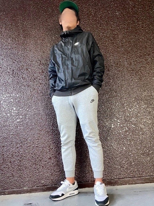 ウインドブレーカー×Tシャツ×スウェットパンツ×スニーカー