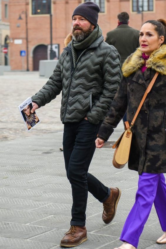 彼がアウターで着ているショート丈のブルゾンが、ジーンズやブーツとの組み合わせで全体的に大人カジュアルなメンズコーデに仕上がってますね。インナーにパーカーを合わせることで、アメカジ感を演出しているのがわかります。足元に見えるダナー製ブーツも、冬のアメカジコーデにおすすめのアイテムですよ。