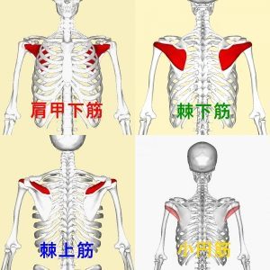回旋筋腱板は肩回りの筋肉の総称で、棘上筋(きょくじょうきん)、棘下筋(きょくかきん)、小円筋(しょうえんきん)、肩甲下筋(けんこうかきん)の4つの筋肉で構成されています。回旋筋腱板を鍛えることで短距離走で重要な腕振りを安定して行えます。