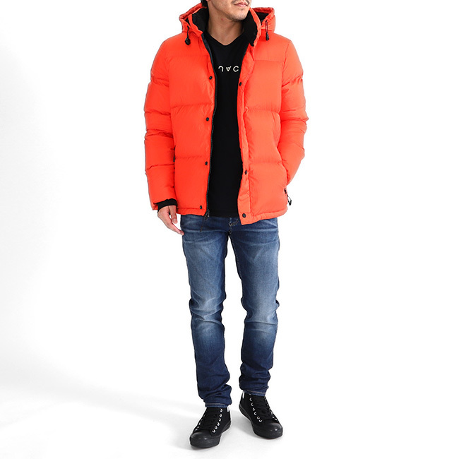 サミットジャケットは、90年代当時のデザインをベースに作られたダウンです。ゆったりとした大きめなシルエットが特徴で、メタルスナップとフラップ付きのパッチポケットがレトロな雰囲気を醸し出します。