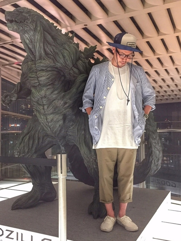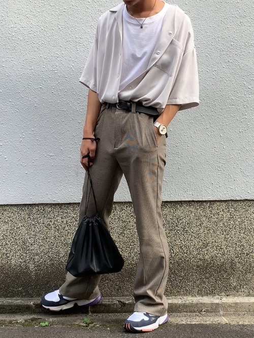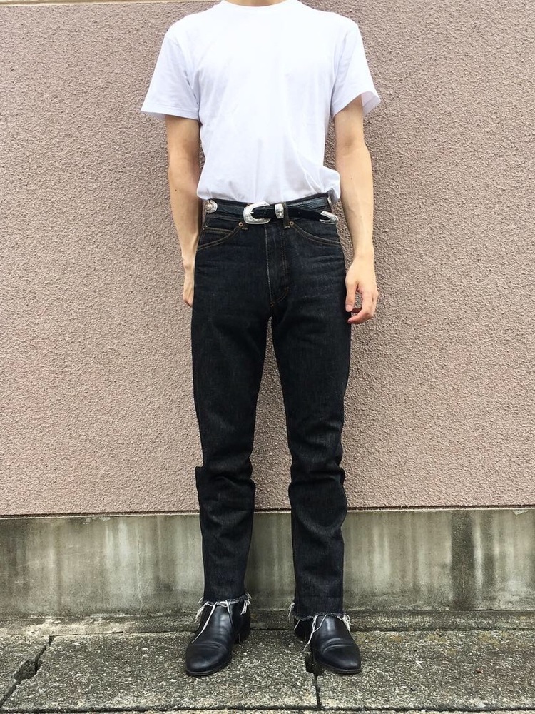 こちらはゴールドラベルのシャツインでの着こなしです。とにかく素材がよく、1枚で着たときの安定感は抜群なので夏にも最適です。パンツやベルトなどでカッコよさを出すと、上質なシャツの雰囲気が際立ちます。ロックスタイルが好きな方やシンプルなコーデに仕上げたい人にもおすすめの一枚です。