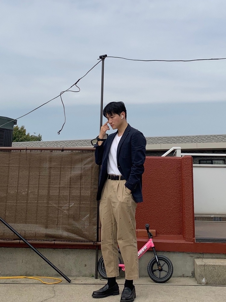 王手セレクトショップSHIPSとのコラボということもあり、とにかくシルエットが綺麗です。肉厚素材・ジャパンフィットのシルエットからは高級感が溢れます。写真のコーデのようにジャケットとの相性も抜群。シャツインで着れば、ビジネスカジュアルとしてもコーデを組みやすい1枚です。