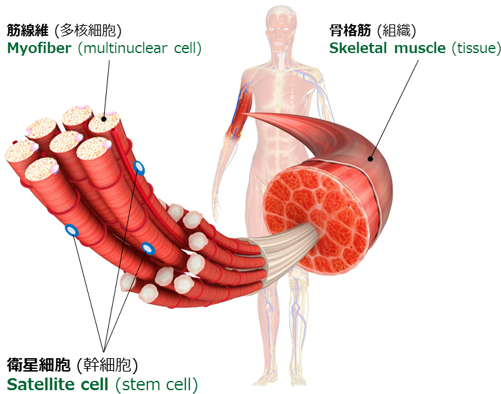 筋繊維自体は分裂せず増えなくても、サテライト細胞は増殖できるので骨格筋は再生・成長することができるということです。