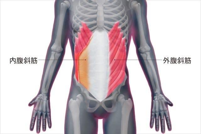 腹斜筋は腹筋群の中で脇腹に位置する筋肉であり、外腹斜筋と内腹斜筋に分かれています。外腹斜筋は外側にあるアウターマッスルで、鍛えると斜めの筋がくっきりとわかる筋肉です。内腹斜筋は内側の層にあり、目に見えません。この内腹斜筋がインナーマッスルと呼ばれます。
