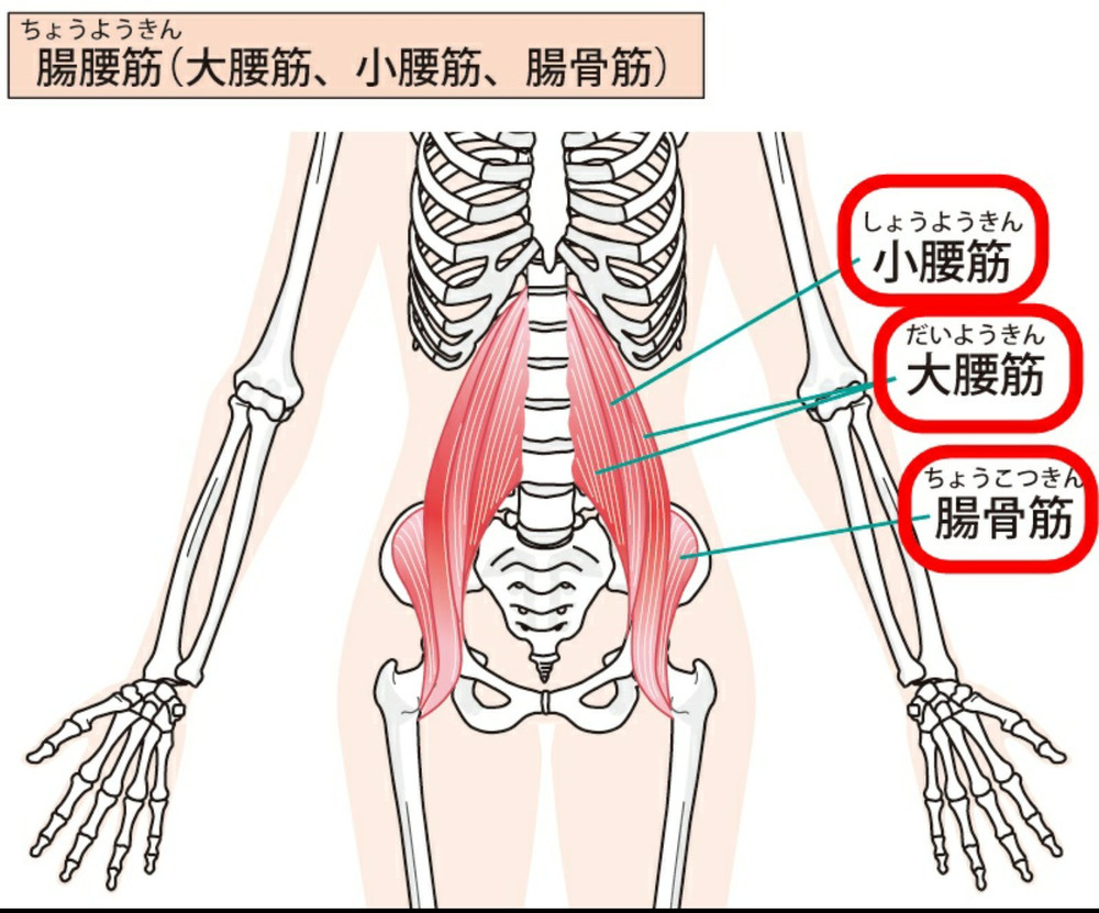 腸腰筋は、大腰筋、小腰筋、腸骨筋という3種類の筋肉で構成される腹筋のインナーマッスルです。大腰筋と小腰筋は腰椎から大腿骨にかけて、腸骨筋は腸骨から大腿筋にかけてついています。骨盤や姿勢を安定させる役割があり、股関節の屈曲や前傾などの下半身の動き、腰椎を湾曲させる動きなどの上半身の動きにも関わっています。