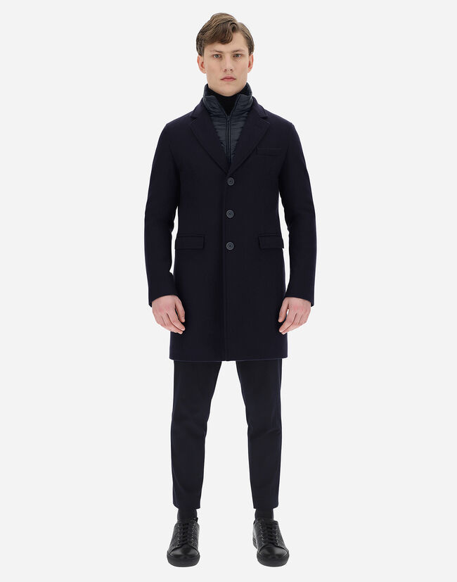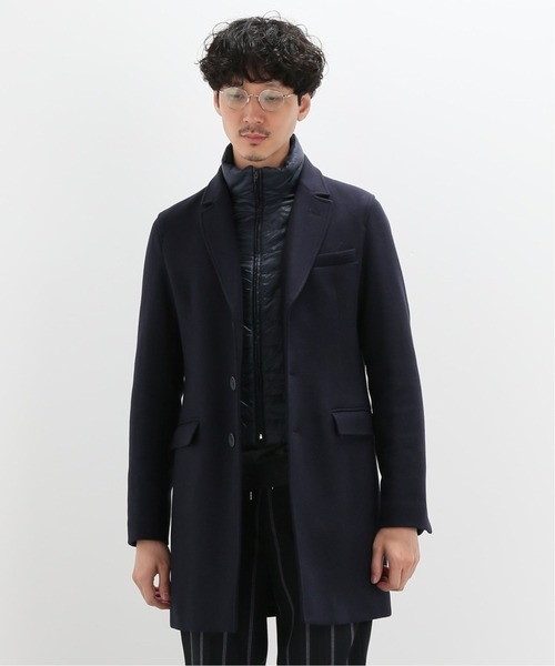 ダイアゴナルウールコートは、インナーダウンベストを着ているように見える取り外し可能のナイロン製ビブスがついたスリムシルエットのコート。ウールとナイロンを織り交ぜたメルトン仕上げの生地やフードのないデザインは、ビジネスはもちろんフォーマルな場面でも活躍するでしょう。サイズ感がタイトな作りのため、1サイズ~2サイズ大きめがおすすめです。
