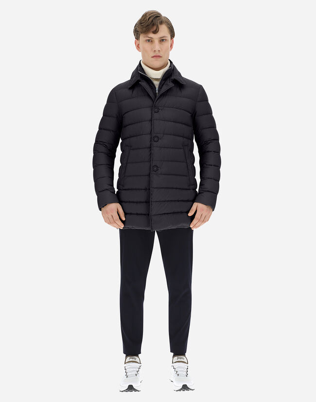 レジェンドラインのリンペリミアービレは、ステンカラーコートのようなデザインをヌアージュナイロンとダウンで仕立てた一着。エスキモーと同じく超極細ダウンとよりすっきりめのシルエットで、ビジネスシーンでもスタイリッシュなダウンの着こなしができます。細身デザインなのでビジネスシーンでジャケットの上に着用する方はワンサイズ大きめがおすすめです。