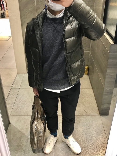 ヘルノのダウンジャケット×スウェットパンツコーデ
