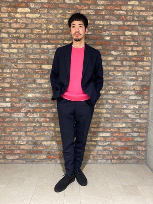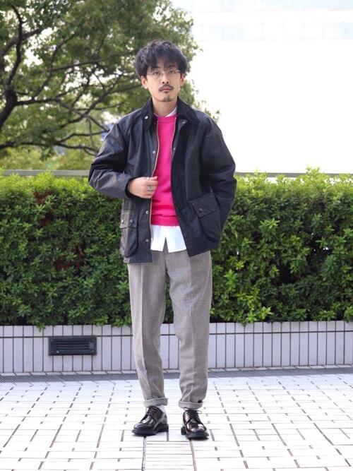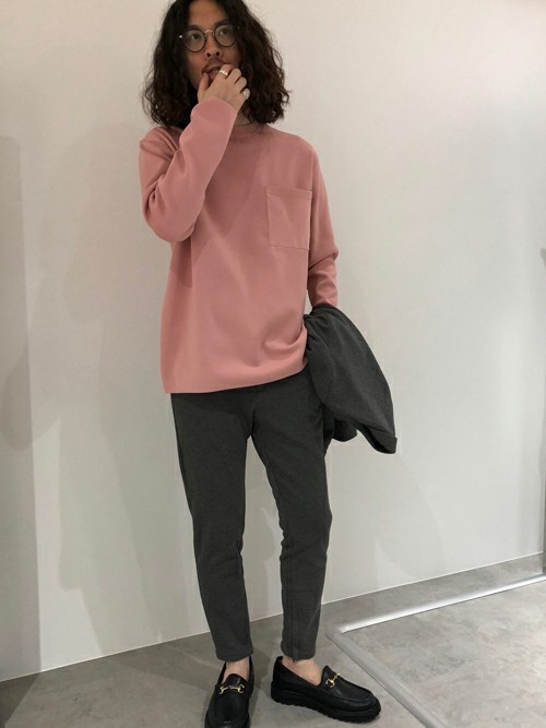 どうしてもピンクを着る勇気が出ない!というメンズは、まずはピンクニットをアクセントとして取り入れてみましょう。落ち着いたカラーのスタイリングに、発色のよいピンクが映えますね。寒くなったらピンクニットをインナーとして着られるのもポイントです。