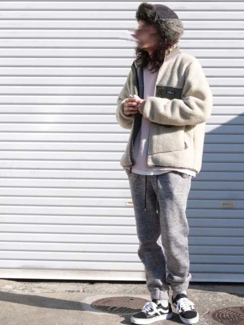 オーバーサイズのピンクニットを使用したストリートMIXスタイル。ピンクとベージュの色合わせで、ラフ過ぎず品のある着こなしになっています。カーキのハットもスタイリングに馴染んだナチュラルなアクセントになっています。