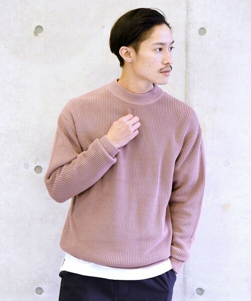 【SHIPS】《洗えるニット》畦編み リラックスフィット モックネック プルオーバー