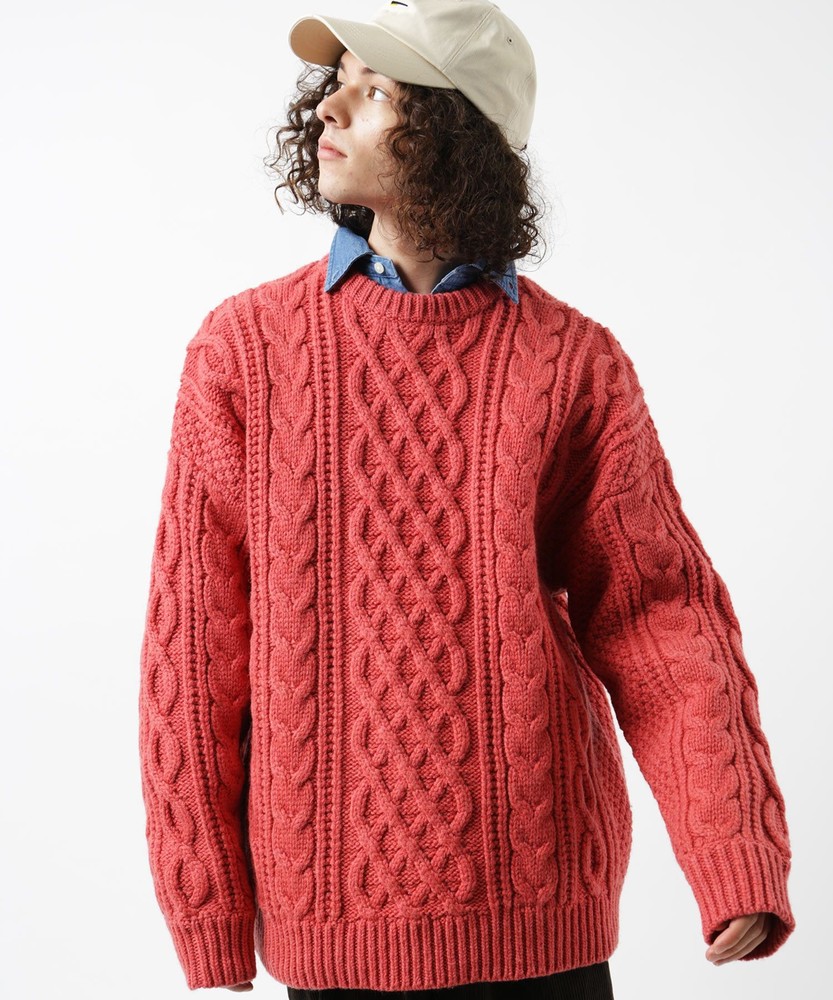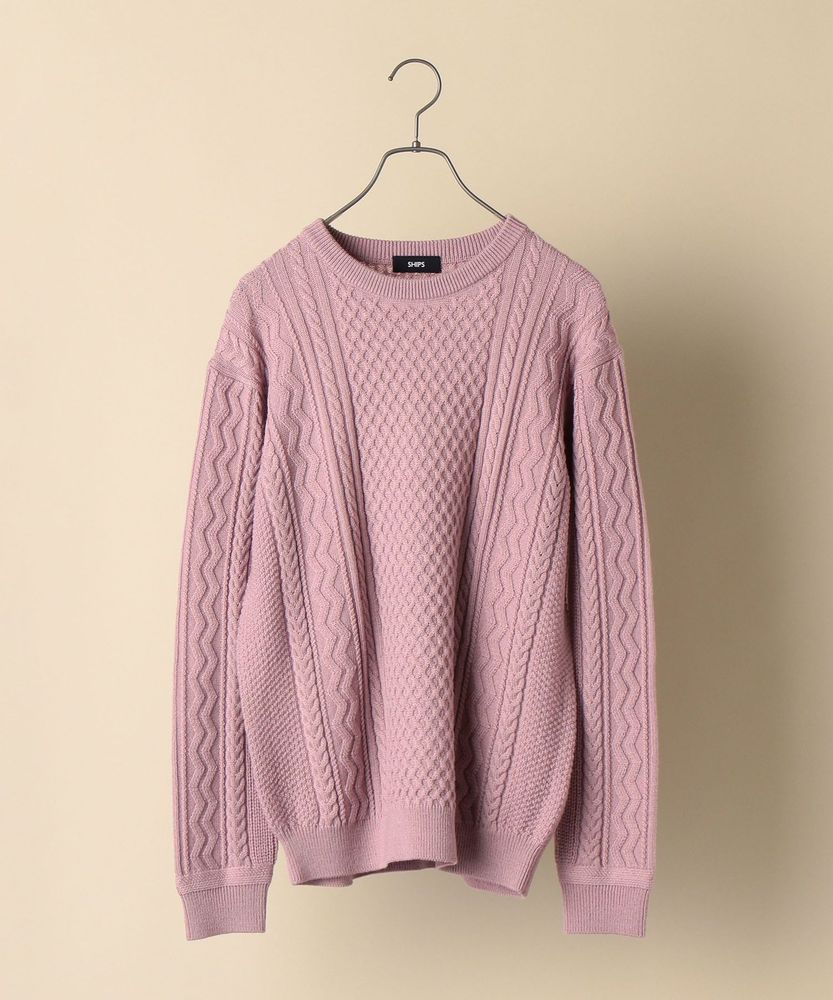 【SHIPS】ミドルゲージ ランダムアラン クルーネック プルオーバー