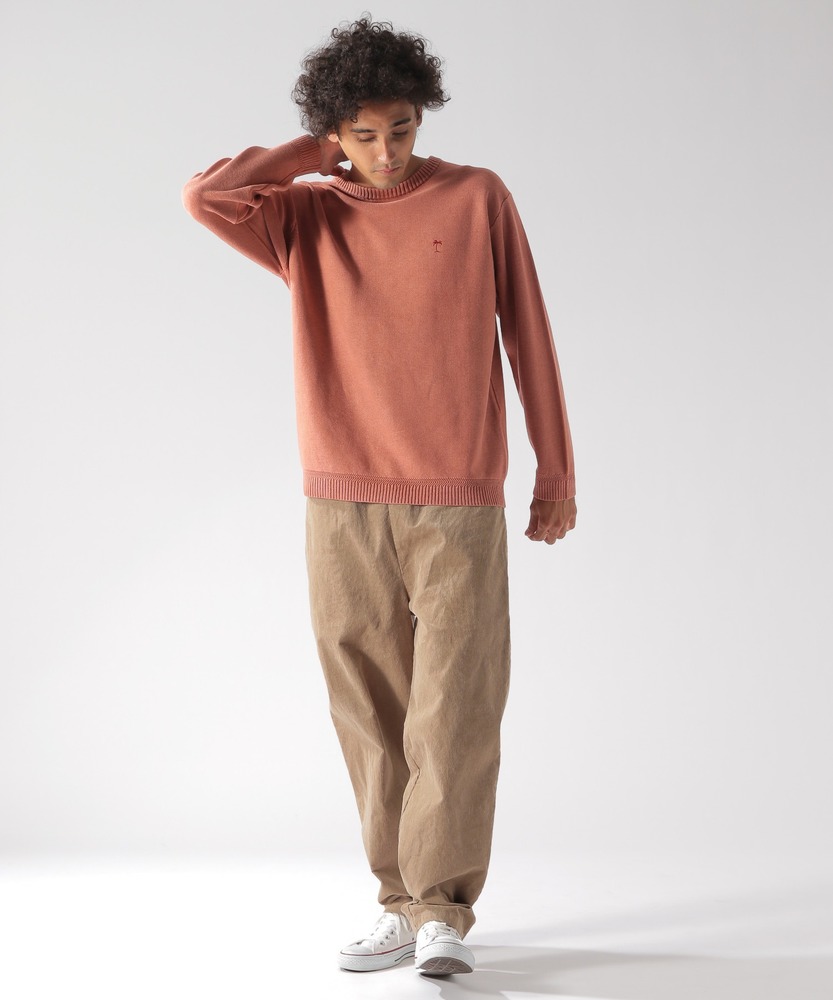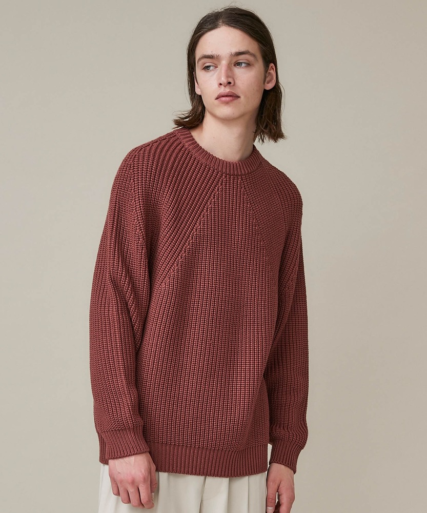 大人カジュアルに着こなせるハイゲージコットンニットプルオーバーです。製品染め後にフェイド加工を施し、褪せ感を演出したニュアンスのあるピンクが特徴的です。コットンニットのやわらかい質感と程よいリラックス感で、きれいめからカジュアルまで幅広いスタイリングに活躍します。