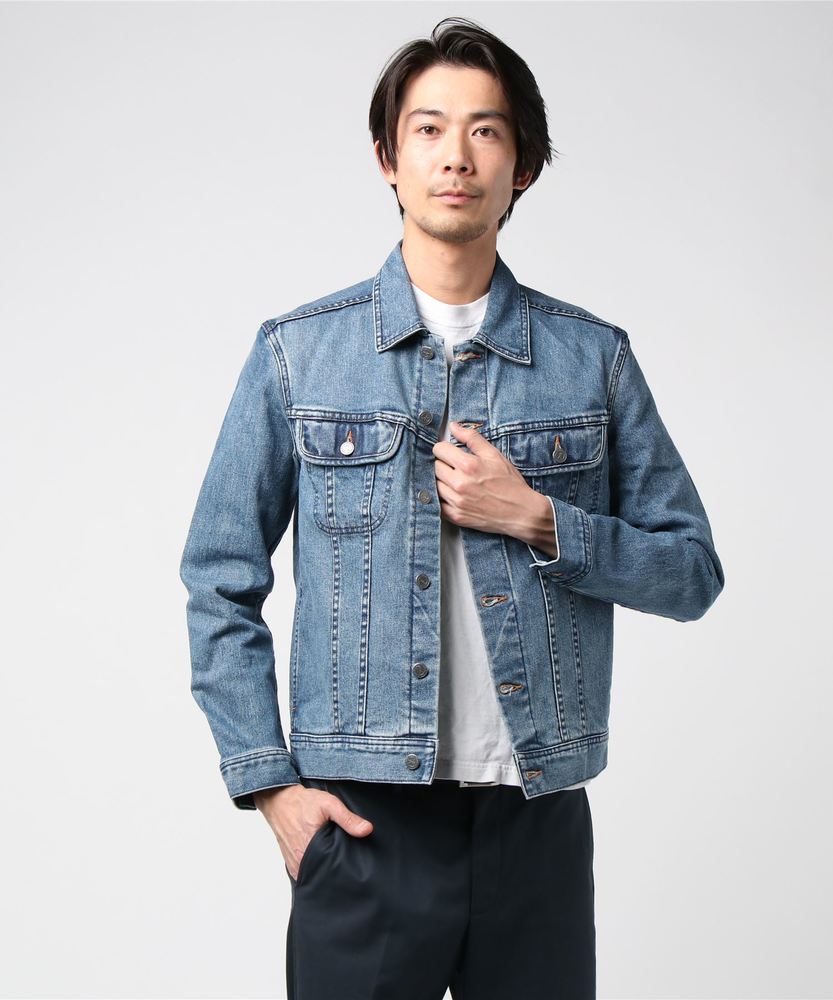 作業着の印象が強いですが、そのヴィンテージ感に洒落っ気がある3rdタイプのcharles denim jacketです。今までのアイテムの脇腹のポケットがフロントにあること、色味が鮮やかなブルーであることが特徴となります。シンプルな着こなしを個性のある装いにしてくれそうです。