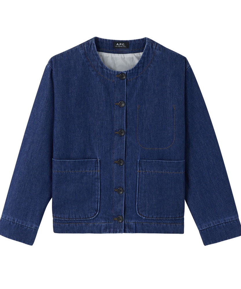 レディースのVESTE LUCILLE 20ACです。生地にはソフトデニムが使われているので、一般的なジージャンより柔らかい着心地となります。襟がノーカラーでとてもシンプルなデザインとなり、春や秋などの中間の時期にぴったりです。少し変わったジージャンもあるのでレディースのアイテムも是非チェックしてみてください。