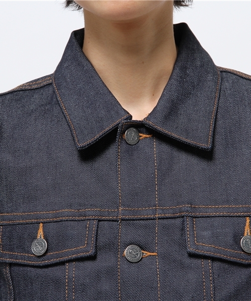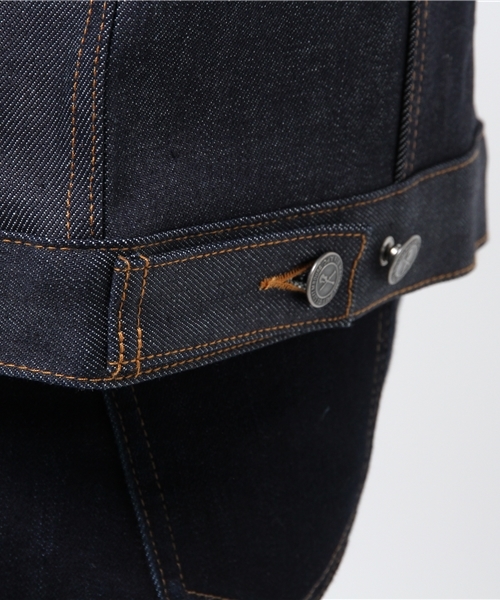 ノンウォッシュ生地(リジッドデニム)の3rdタイプのデニムUSジャケットです。先ほど紹介したアイテムと似ており色落ちを楽しめるアイテムとなりますが、タイプが違ったり、ポケットにボタンが付いていたり少し違うだけで雰囲気がとても違いますね。他にもボタン部分以外のステッチはとてもシンプルなデザインです。