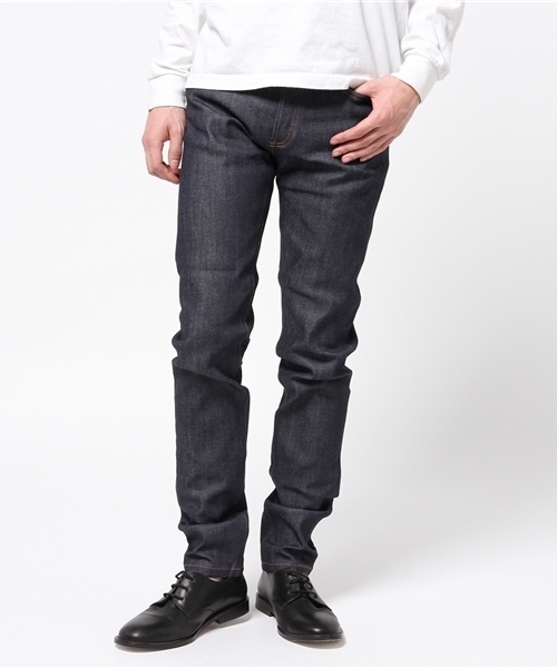 一見レギュラーなストレートデニムのようですが、実際に履いたときのスリムなシルエットが大きな魅力でスタイルアップ効果も期待できます。サイズ展開は24~33インチと一般的なサイズが揃っていますが、スリムなシルエットを実現すると同時に若干きつく感じる方も少なくありません。サイズ感に不安がある方は、一つ大きめのサイズを選ぶのがおすすめです。