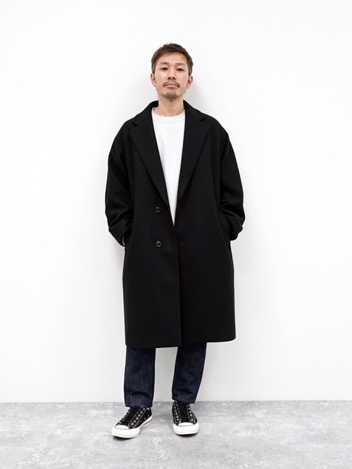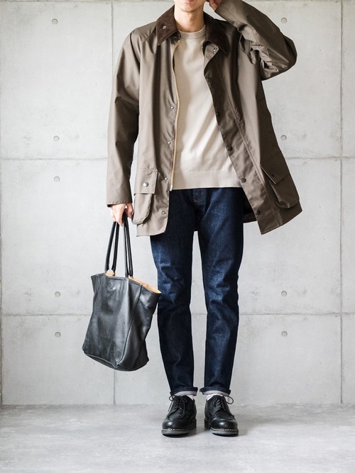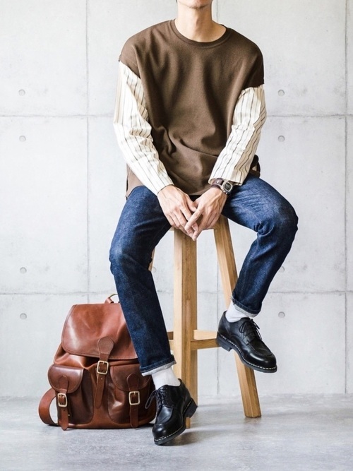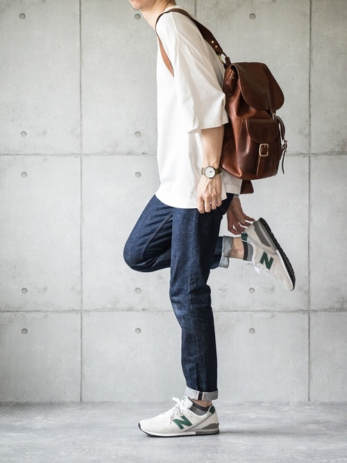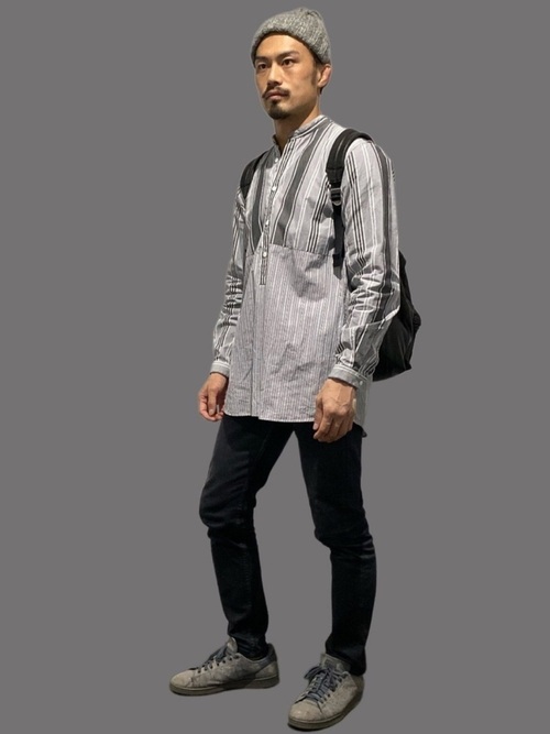 こちらは、大きめシルエットのシャツにニュースタンダードを合わせたコーディネートです。レッグ部分にゆとりを持たせながらも、すっきりとしたシルエットを実現したニュースタンダードなら、こちらのようにメリハリのあるシルエットのコーディネートが映えます。
