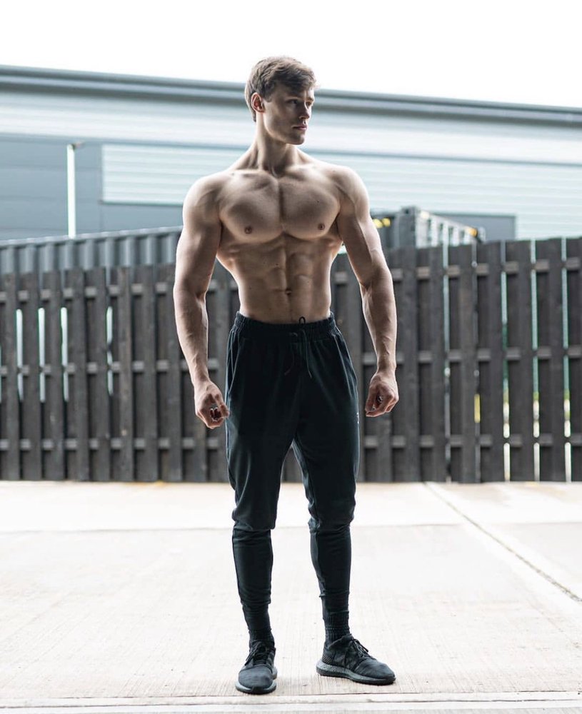 僧帽筋から腕、腹筋にかけてのバランスが美しいです。ここまでくるとシンプルなポーズでも映えますね。