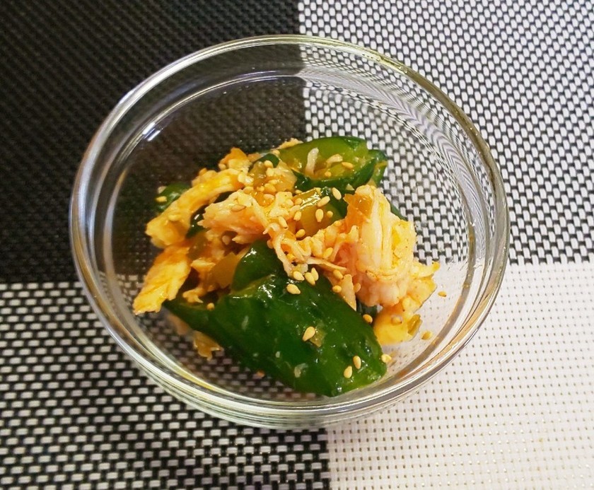 サラダチキンとたたききゅうりのさっぱりポン酢和え