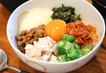 納豆やオクラなどのネバネバ食材は、ペクチンという食物繊維とムチンという糖タンパク質を含み健康にとてもよいです。ペクチンは腸内の善玉菌を増やして整腸作用を持ち、ムチンはタンパク質の分解を促進する酵素を含んでいるため、筋トレでプロテインを摂取する人々には持って来いの食べ合わせなのです。