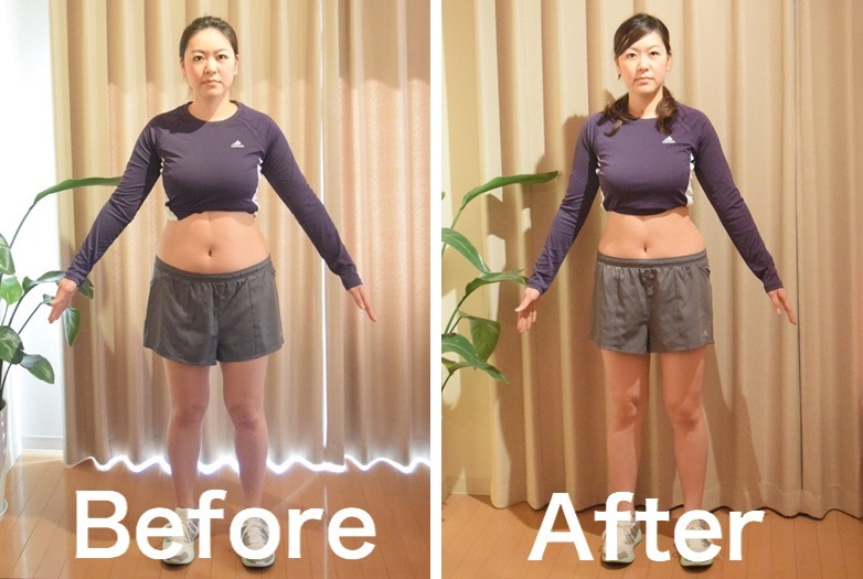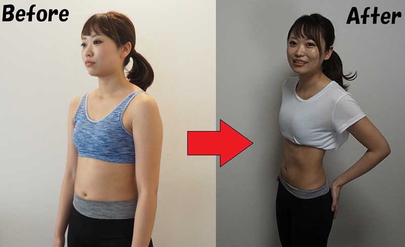 ダイエットインストラクターの方が、パーソナルジムでトレーニングを行なったビフォーアフターです。みごとに腹筋が割れ、腕回りも引き締まっています。