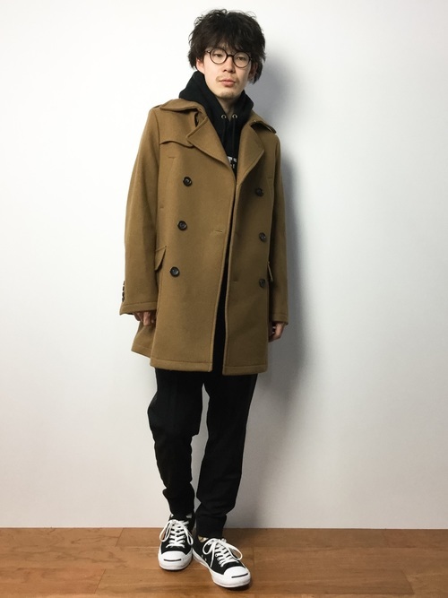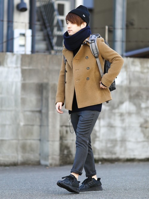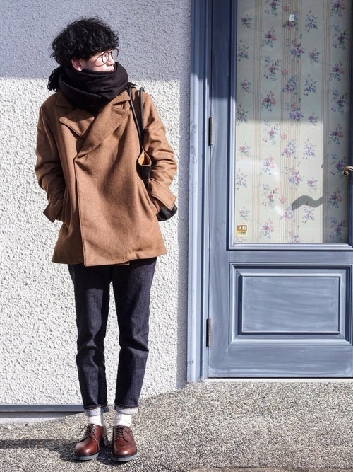 温かい印象で優しい雰囲気が出るので女子ウケも良いキャメルのPコート。実際のメンズコーデをチェックしていきましょう。